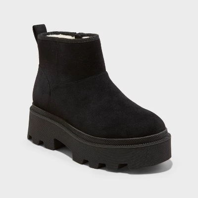 Finish off your colder-weather wardrobe with the standout look of these Rowan Winter Boots from Universal Thread™. These medium-width winter boots feature a faux-suede upper and memory foam insoles with faux-fur lining to help keep your feet in cozy comfort. A side zipper closure and back loop make for easy on and off, and the 2-inch block heel lends an elevated finish to your look. Pair them with jeans, pants, blouses and tees or dresses for easy styling.