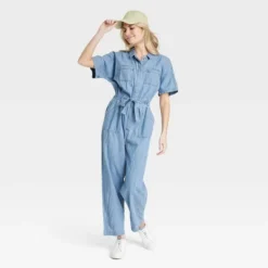 Women’s Button-Front Short Sleeve Boilersuit – Universal Thread™ Indigo